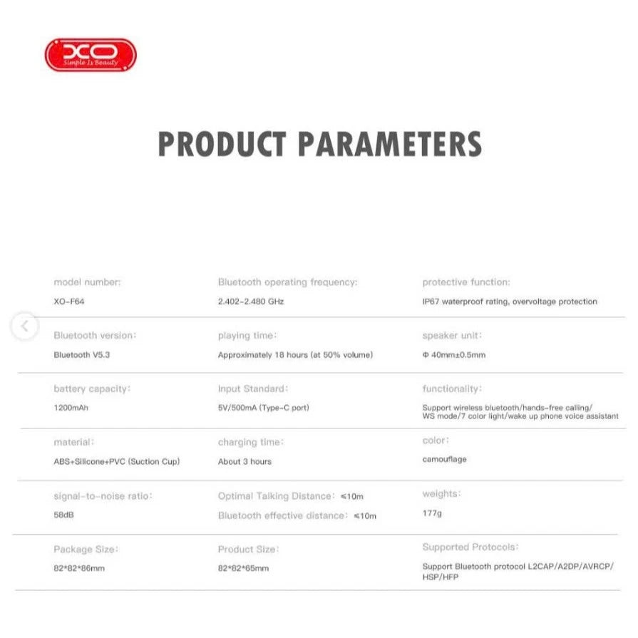 XO-F64 là mẫu loa Bluetooth mini thế hệ mới, sở hữu thiết kế nhỏ gọn, chống nước toàn diện, âm thanh mạnh mẽ cùng nhiều tính năng thông minh. Từ giải trí tại nhà đến mang theo khi đi xa, đây là thiết bị lý tưởng để đồng hành cùng bạn mọi lúc, mọi nơi.