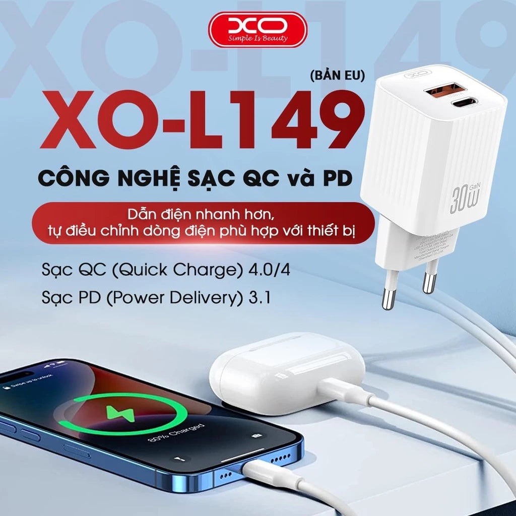 THÔNG SỐ KỸ THUẬTXO-L149 - Củ sạc nhanh GaN 30W, củ sạc 2 cổng sạc USB-A và USB-C, công nghệ sạc PD và QC, sạc cho Android, iOS, iPhone, iPad, laptop, chất liệu chống cháy nổ, bảo hành 1 đổi 1 Tên sản phẩm: XO - L149 |