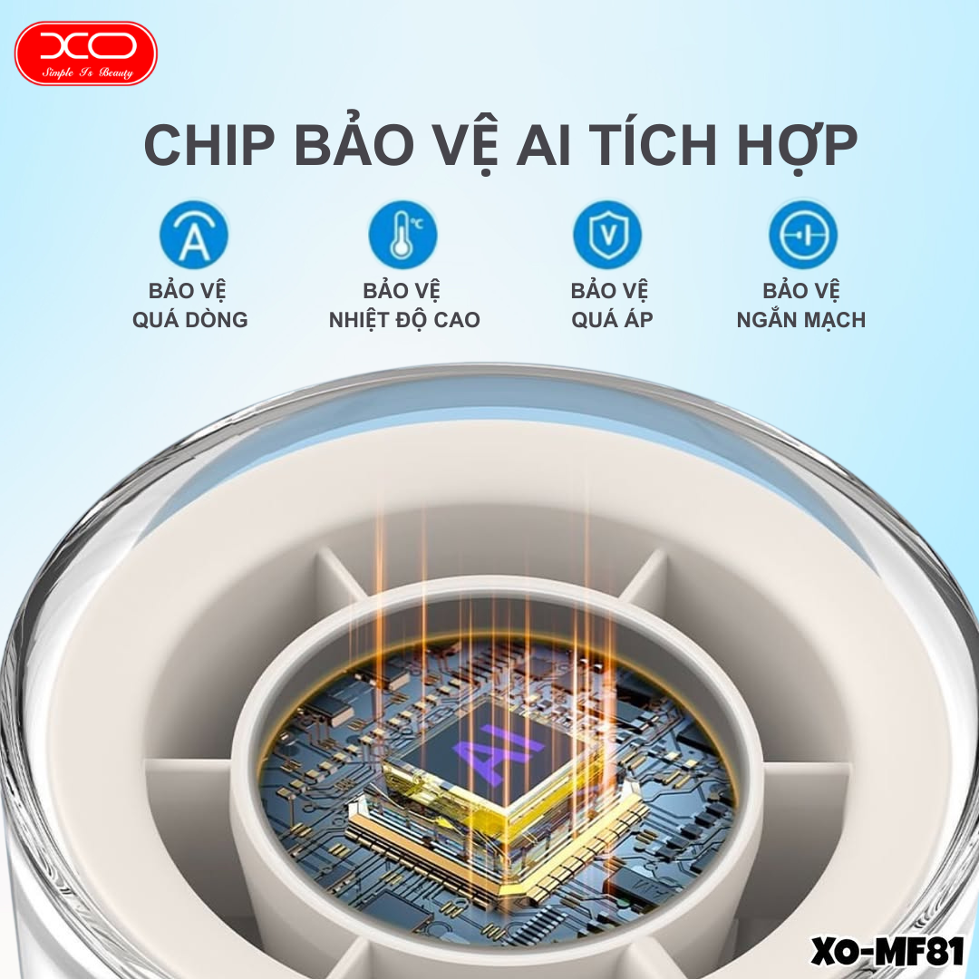 An toàn luôn là ưu tiên hàng đầu và XO-MF81 đáp ứng điều chỉnh với chip AI cảm biến nhiệt hiện đại, tự động điều chỉnh công suất để tránh quá tải, giảm thiểu nguy cơ cơ cháy nổ. Công nghệ này bảo vệ cả thiết bị giữa người dùng, giúp bạn yên tâm sử dụng suốt nhiều giờ liền mà không gặp rủi ro về nhiệt hay điện.