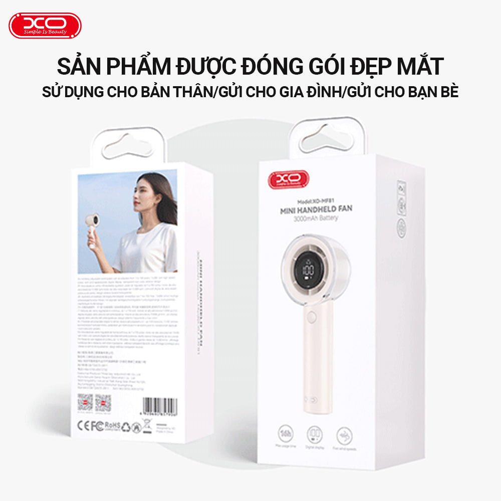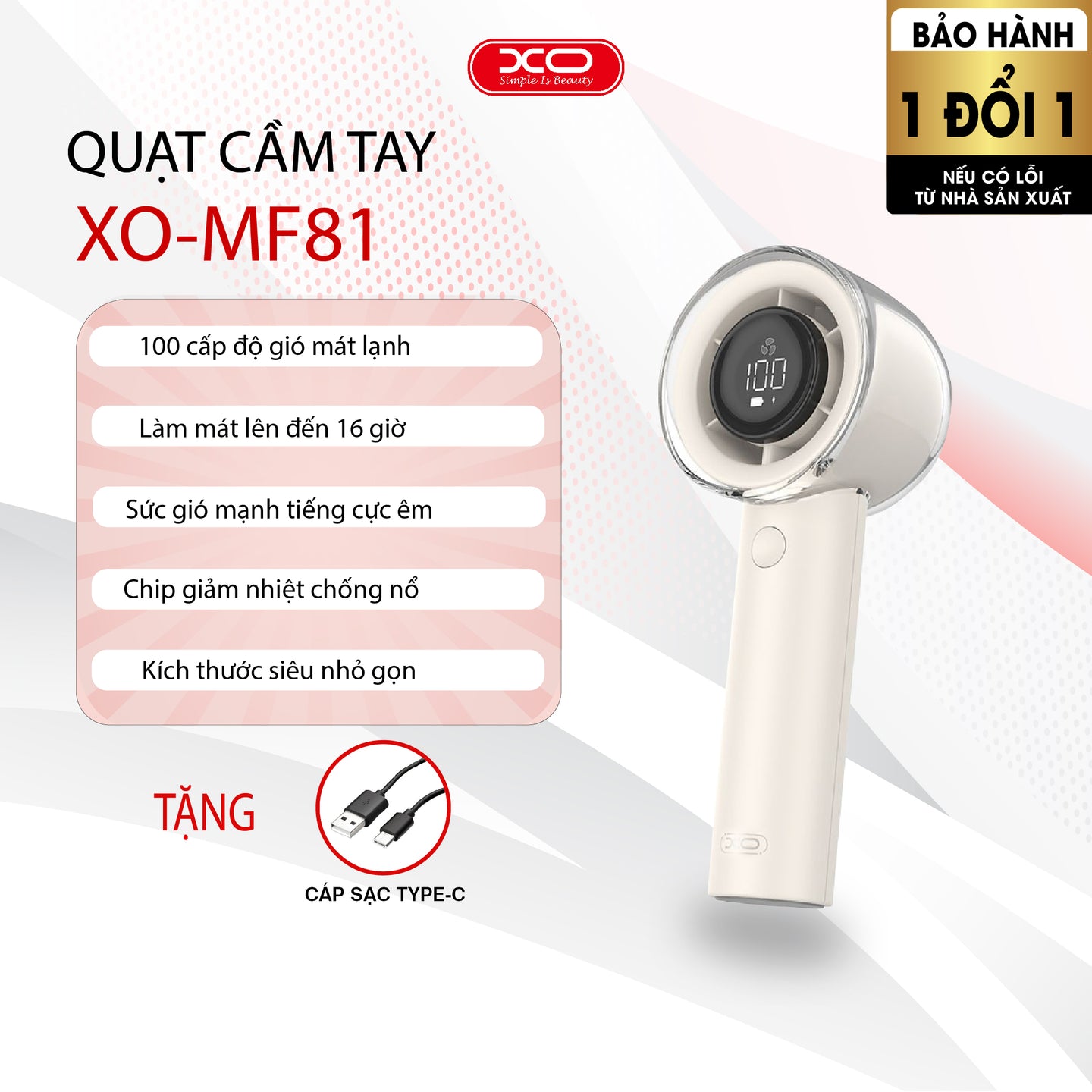 THÔNG SỐ KỸ THUẬTQuạt Cầm Tay Mini XO-MF81 Chính Hãng - 16h hoạt động, màn hình LED, gió cực mạnh, pin lâu, nhỏ gọn Tên sản phẩm: XO - MF81 |