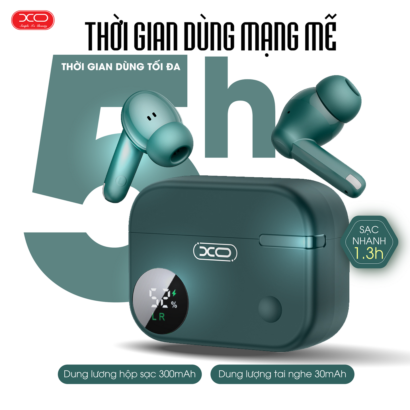 XO-G34 sở hữu kiểu dáng in-ear ôm sát tai, cùng nút đệm cao su mềm mại giúp tăng độ bám và khả năng cách âm thụ động. Hộp sạc nhỏ gọn được tích hợp màn hình hiển thị phần trăm pin, thuận tiện theo dõi khi di chuyển. Chất liệu nhựa ABS + PC bền bỉ, chống va đập, đảm bảo tuổi thọ sản phẩm lâu dài.