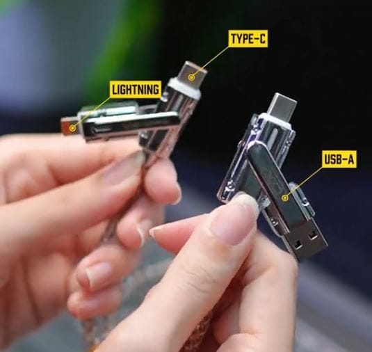 Một trong những điểm cộng lớn của XO-NB276 chính là khả năng tương thích rộng rãi. Sản phẩm được thiết kế dạng đa năng 4 trong 1, hỗ trợ nhiều loại cổng kết nối khác nhau bao gồm Type-C, Lightning và USB-A. Điều này có nghĩa là bạn chỉ cần một sợi cáp duy nhất để phục vụ cho nhiều thiết bị khác nhau như:
