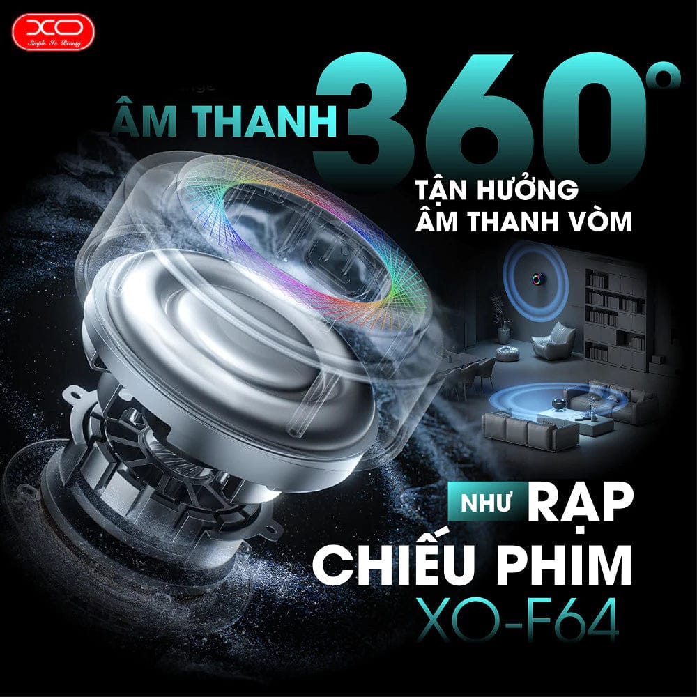 Dù có kích thước nhỏ gọn, XO-F64 vẫn mang lại âm thanh vòm 360 độ với tiếng bass sâu, chắc và mạnh mẽ. Chất lượng âm thanh Hifi giúp tái hiện chi tiết giai điệu và giọng hát, tạo nên không gian giải trí sống động như trong phòng thu.