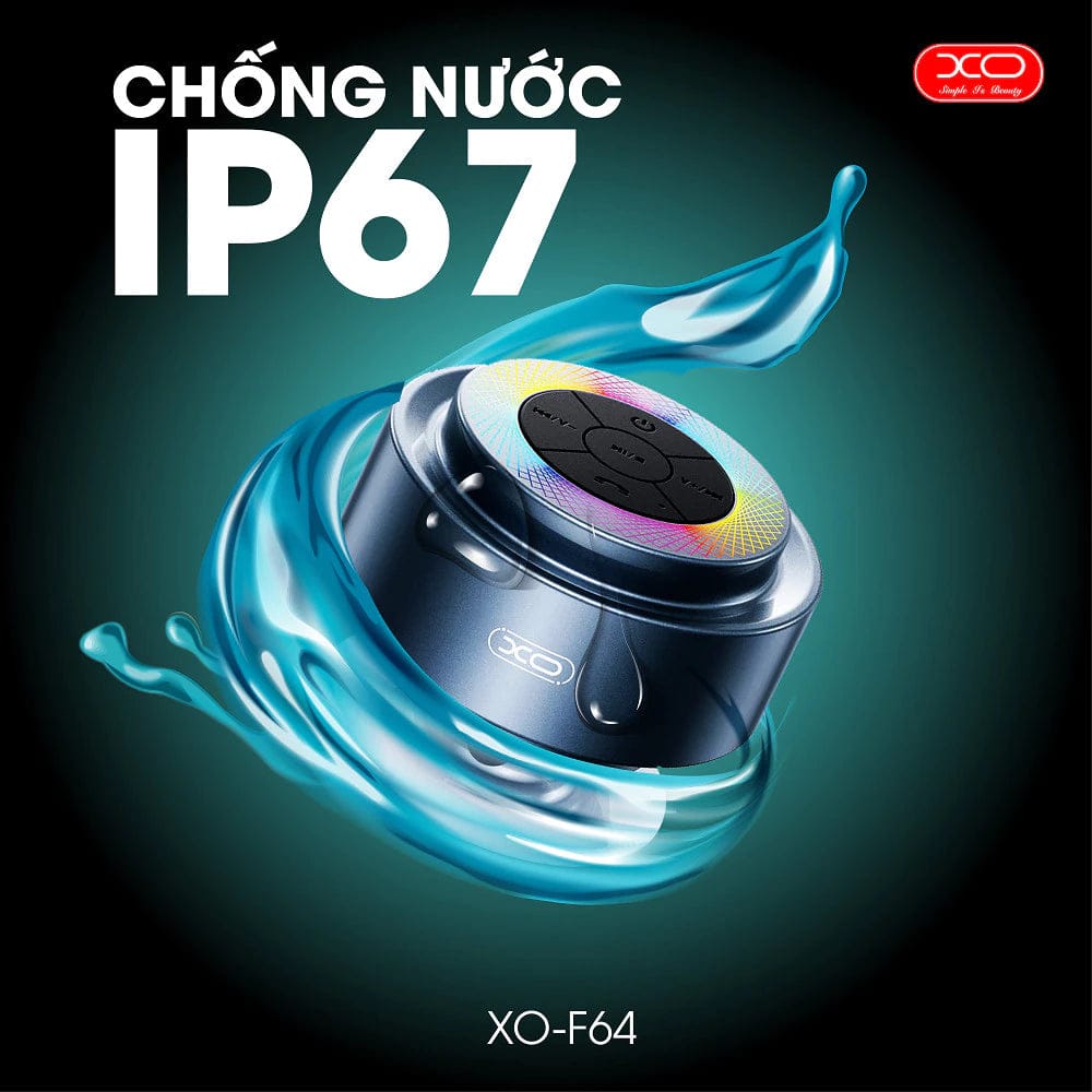 Được trang bị chuẩn chống nước IP67, XO-F64 hoạt động ổn định kể cả khi tiếp xúc với nước, mưa nhẹ hoặc môi trường ẩm ướt như nhà tắm, nhà bếp, hồ bơi hay trên ô tô. Bạn có thể yên tâm sử dụng loa ở bất kỳ đâu mà không cần lo hỏng hóc.