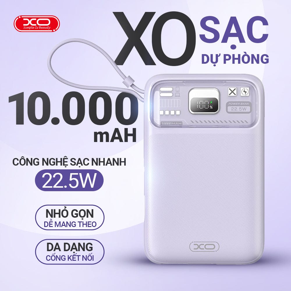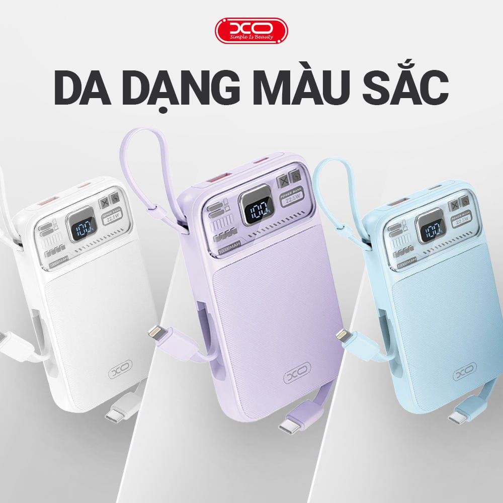 Bạn thường xuyên phải di chuyển, dùng nhiều thiết bị và không muốn mang theo cả đống dây sạc rối rắm? XO-PR243 chính là giải pháp gọn nhẹ, mạnh mẽ, thông minh để bạn sạc nhanh mọi thiết bị ở bất kỳ đâu. Dung lượng 10.000mAh thực tế sử dụng cao, thiết kế nhỏ gọn tích hợp sẵn dây, cho phép bạn chủ động sạc khi cần mà không phụ thuộc vào ai hay bất kỳ phụ kiện nào khác.