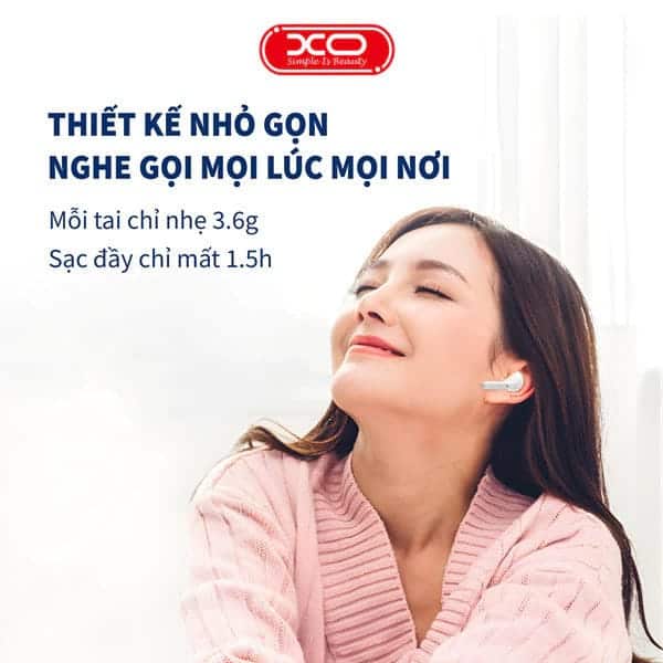 Khi chọn tai nghe, thiết kế và sự thoải mái khi đeo là yếu tố quan trọng đầu tiên. XO-G34 mang phong cách in-ear, ôm sát tai và đi kèm đệm cao su tăng độ bám, giúp cách âm tốt hơn khi chuyển ra ngoài trời. Điểm cộng là màn hình tích hợp thanh tích hiển thị % pin, giúp người dùng dễ dàng theo dõi lại lượng dung dịch.