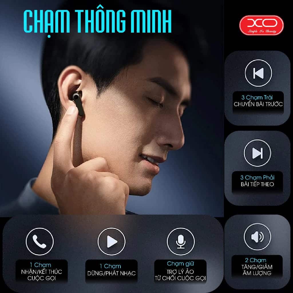 XO-X33 cũng có điều khiển cảm ứng nhưng thiên về các chức năng cơ bản: nhận cuộc gọi, phát/dừng nhạc, chuyển bài, tăng/giảm âm lượng và kích hoạt hỗ trợ ảo. Đây là lựa chọn đơn giản, dễ thao tác, phù hợp với người thích tối giản.